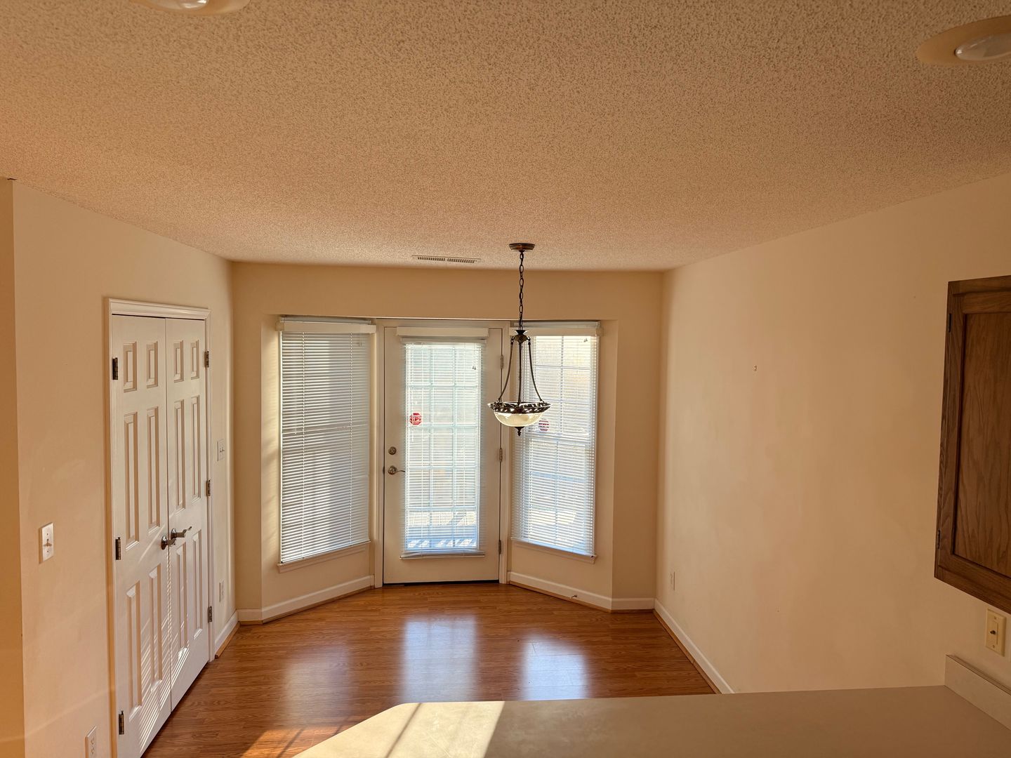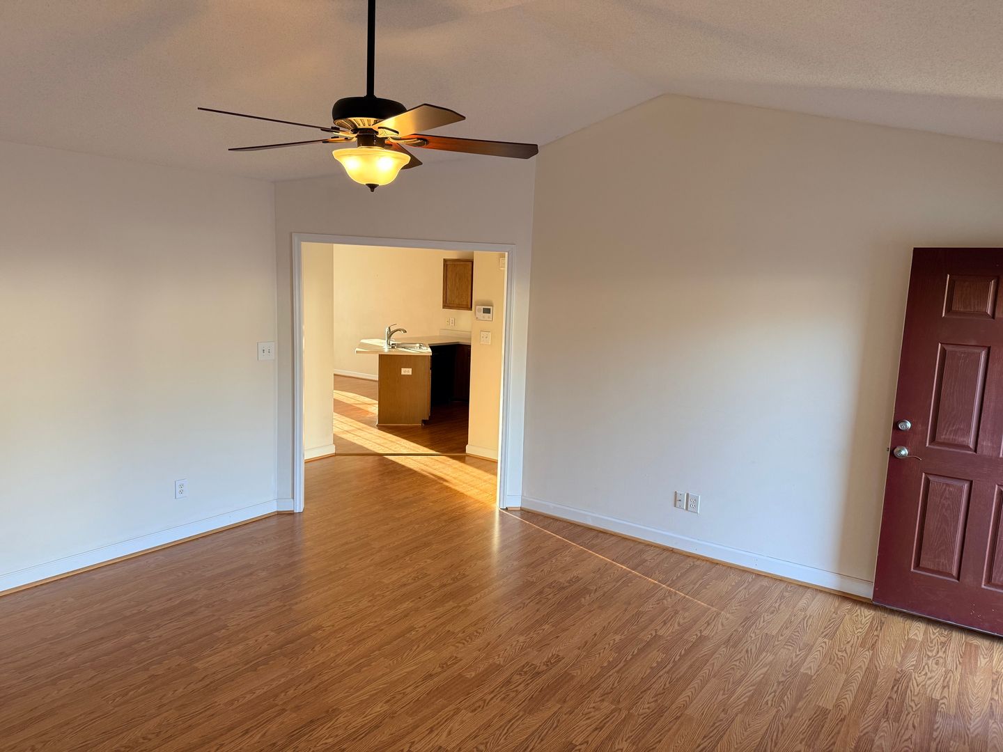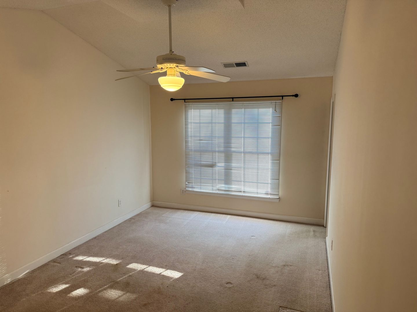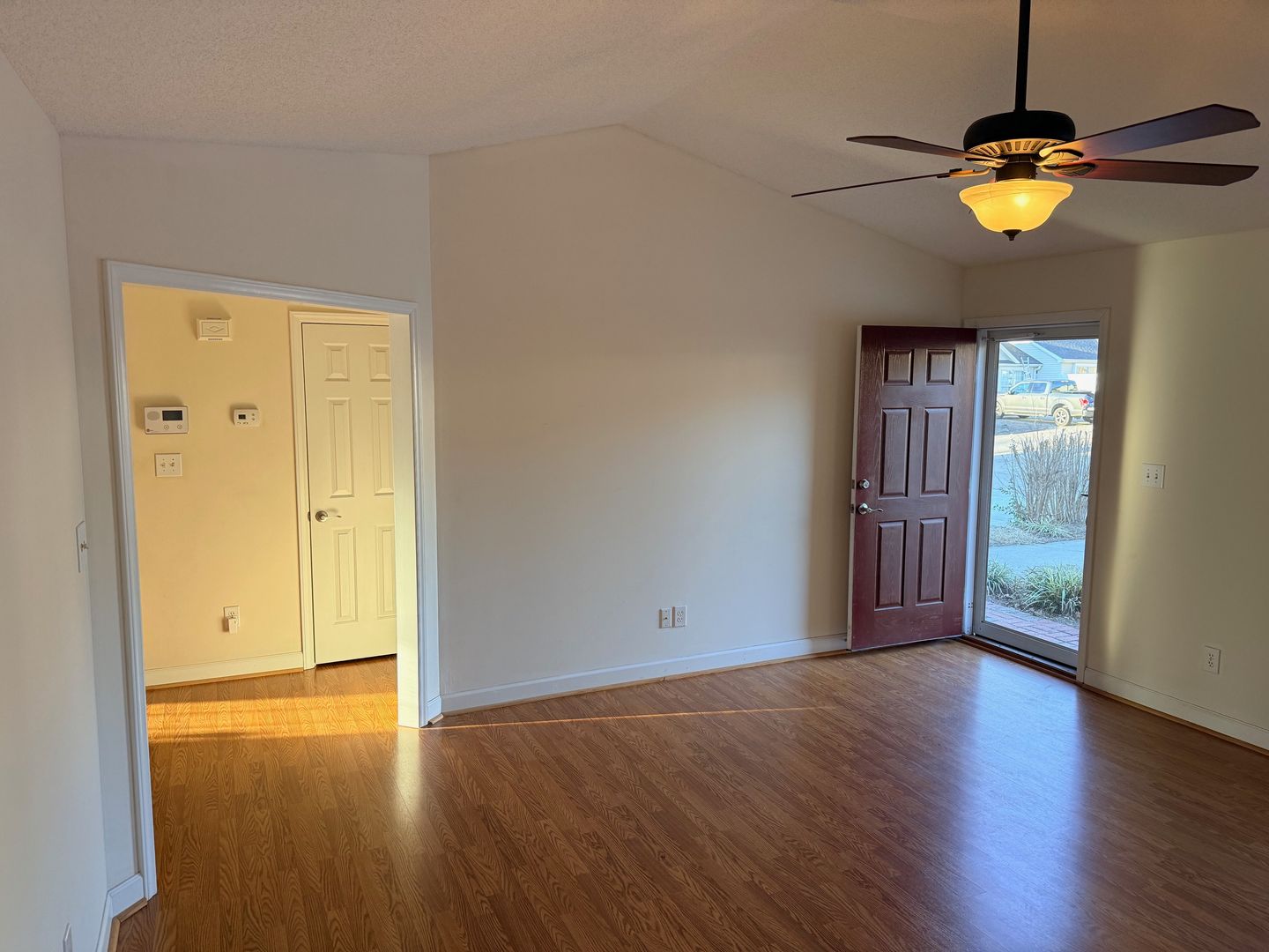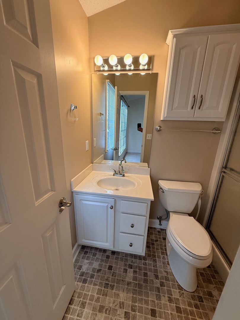 2 Bedroom, 2 Bath Townhome with vaulted ceilings in Den and Primary Bedroom. Heat pump with central air. Ceiling fans in den and both bedrooms. Dining area off kitchen with bay windows and door going out to large deck overlooking Matrimony Creek Greenway with steps down to concrete patio with swing below. Includes stove, refrigerator, dishwasher, microwave, and washer/dryer hookups.