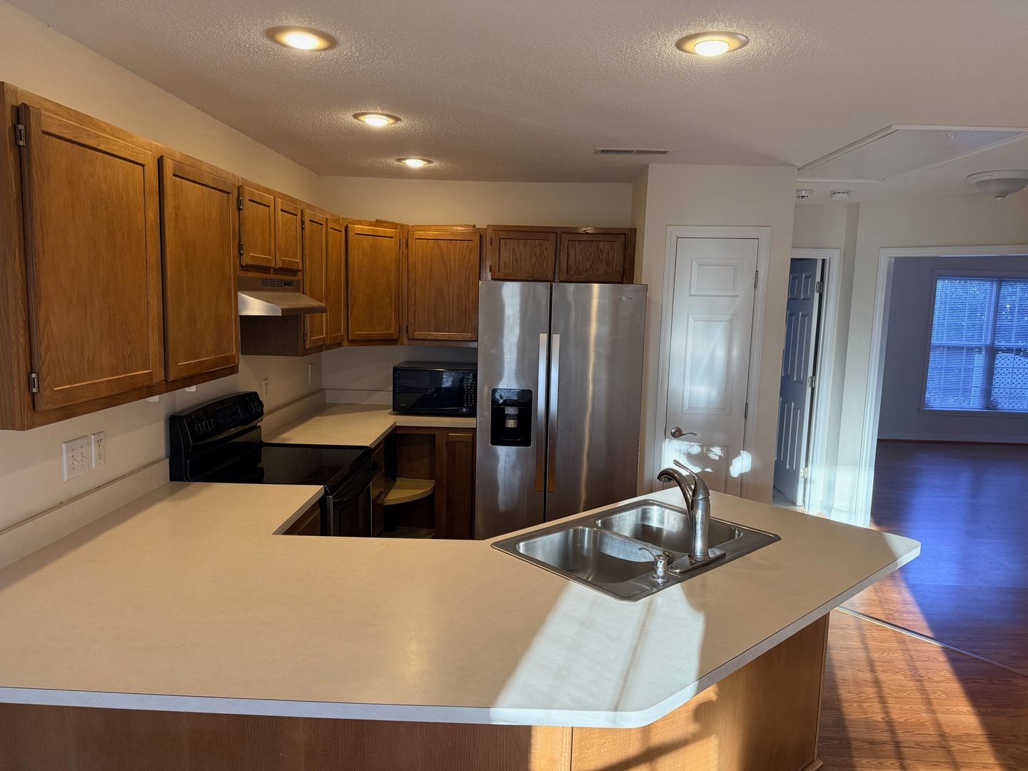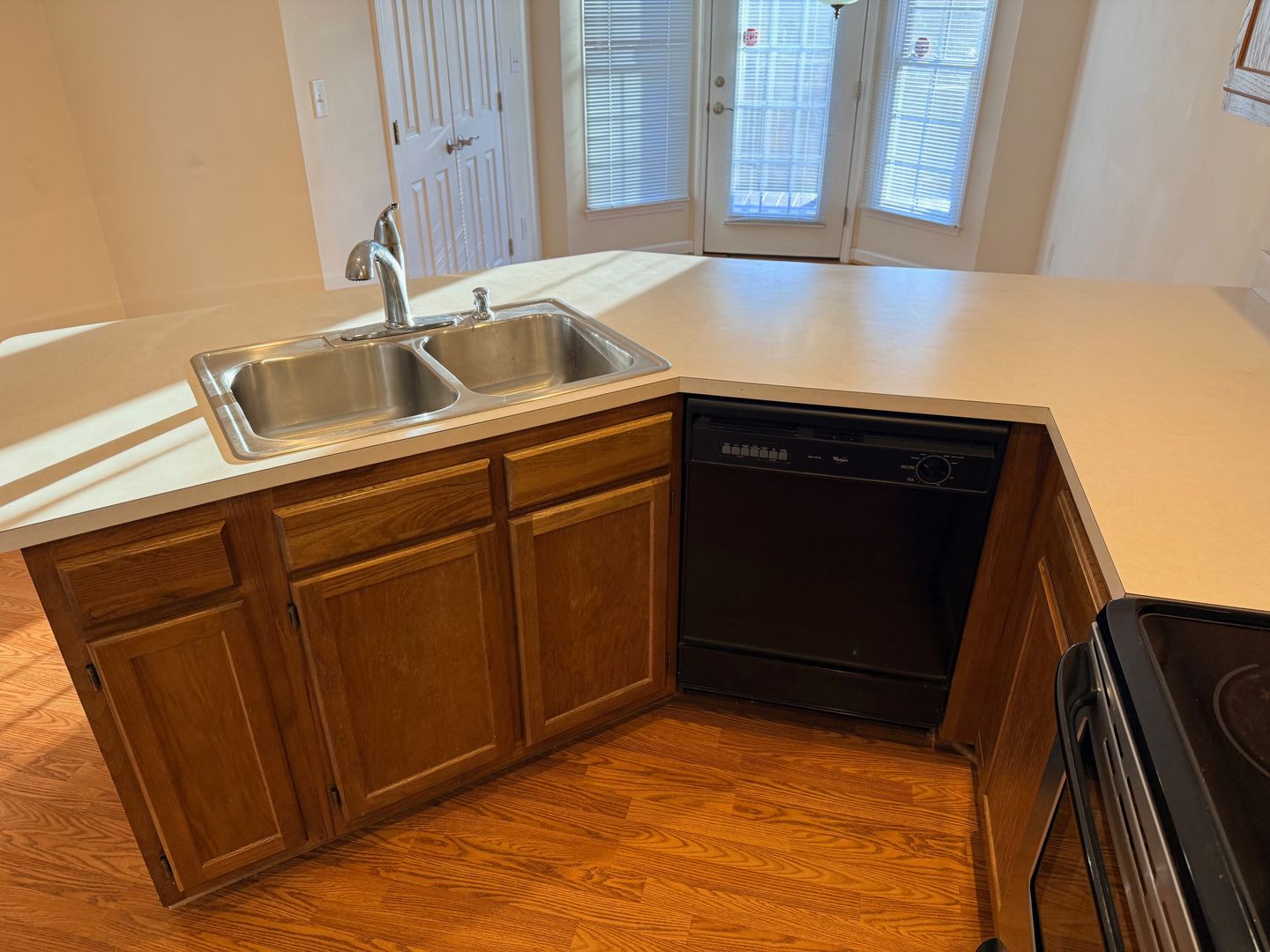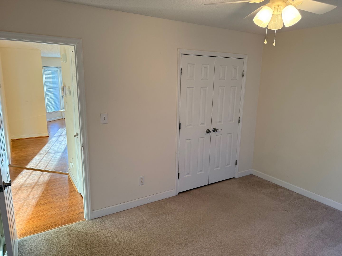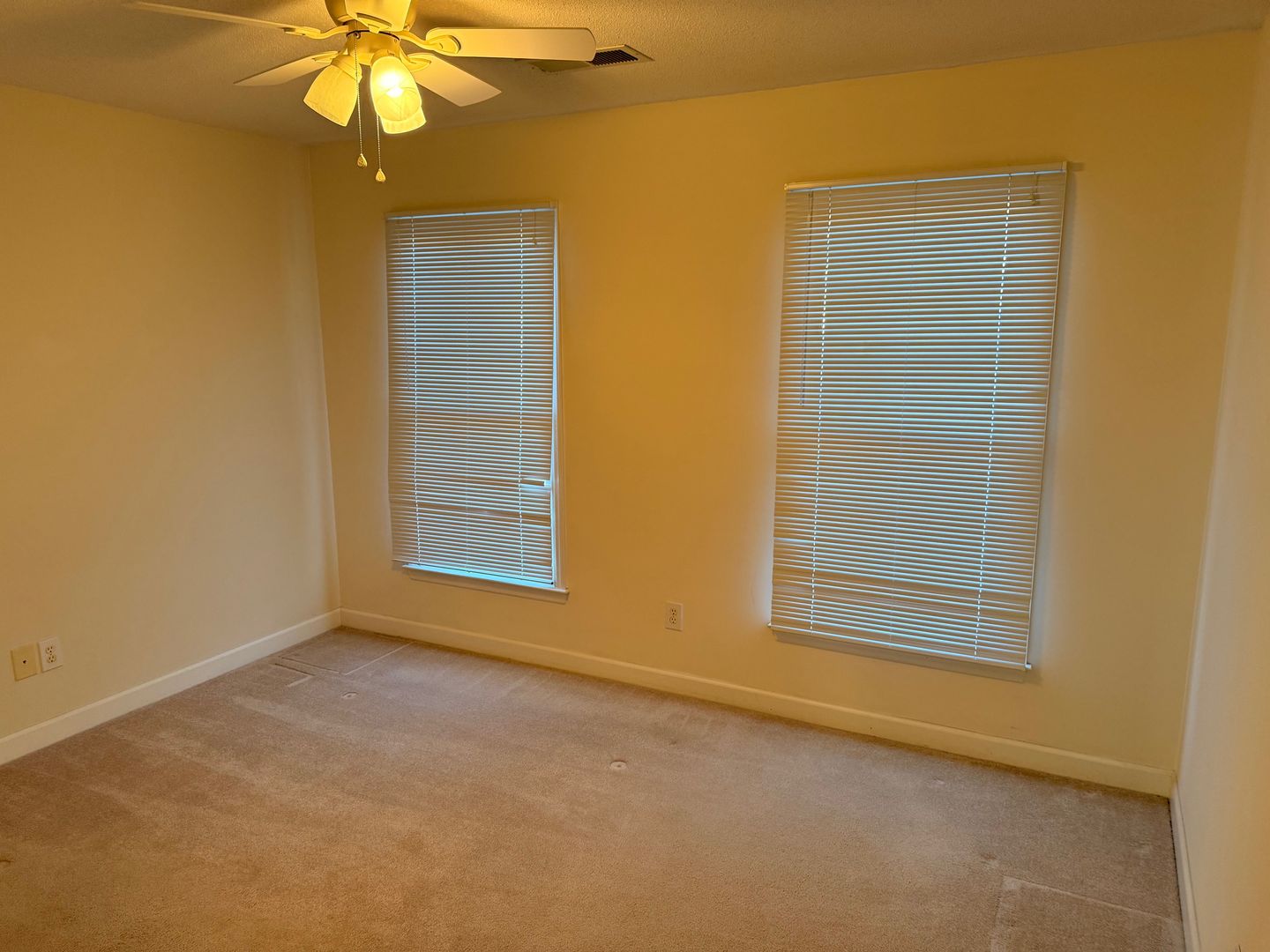 2 Bedroom, 2 Bath Townhome with vaulted ceilings in Den and Primary Bedroom. Heat pump with central air. Ceiling fans in den and both bedrooms. Dining area off kitchen with bay windows and door going out to large deck overlooking Matrimony Creek Greenway with steps down to concrete patio with swing below. Includes stove, refrigerator, dishwasher, microwave, and washer/dryer hookups.