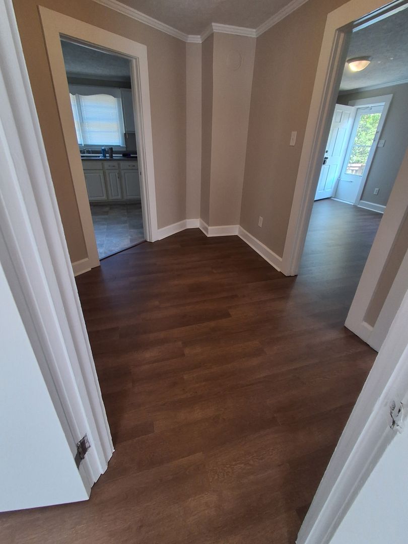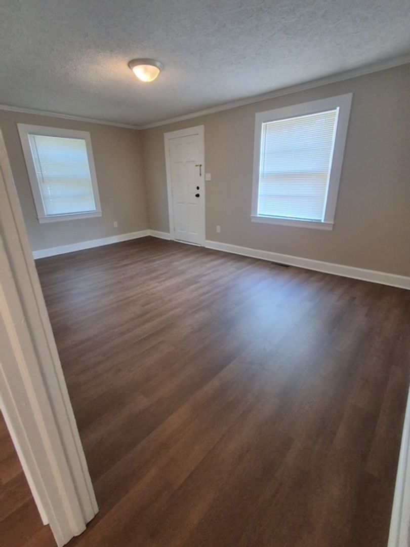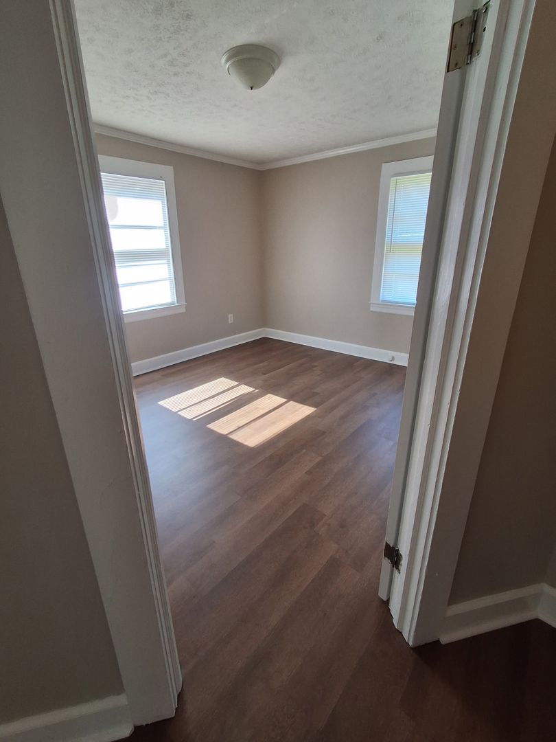 Nice 2 br garage apt. in central location. Kitchen offers stove, refrigerator, washer & dryer hook up, freshly painted; heat pump. Rent includes water, trash & lawn maintenance.